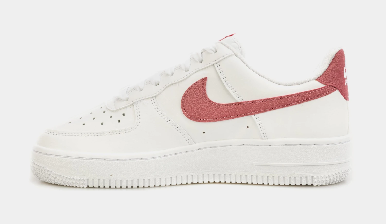 Dressed in a White and Desert Berry color scheme. This offering of the Nike Air Force 1 Low features a clean all-White leather upper detailed with Berry textile Swooshes and heels. Additional Berry branding on the tongues and insoles atop a White AF1 rubber sole completes the design.
