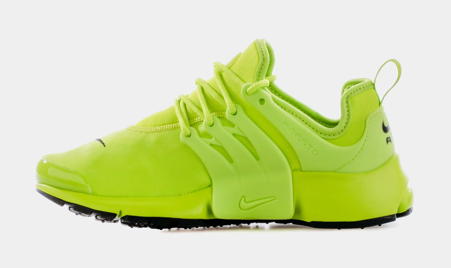 This offering of the Nike Air Presto features an upper fully covered in a Volt color blocking that extends onto the laces, cage overlays, and midsole. Black branding throughout atop a matching rubber outsole completes the design.