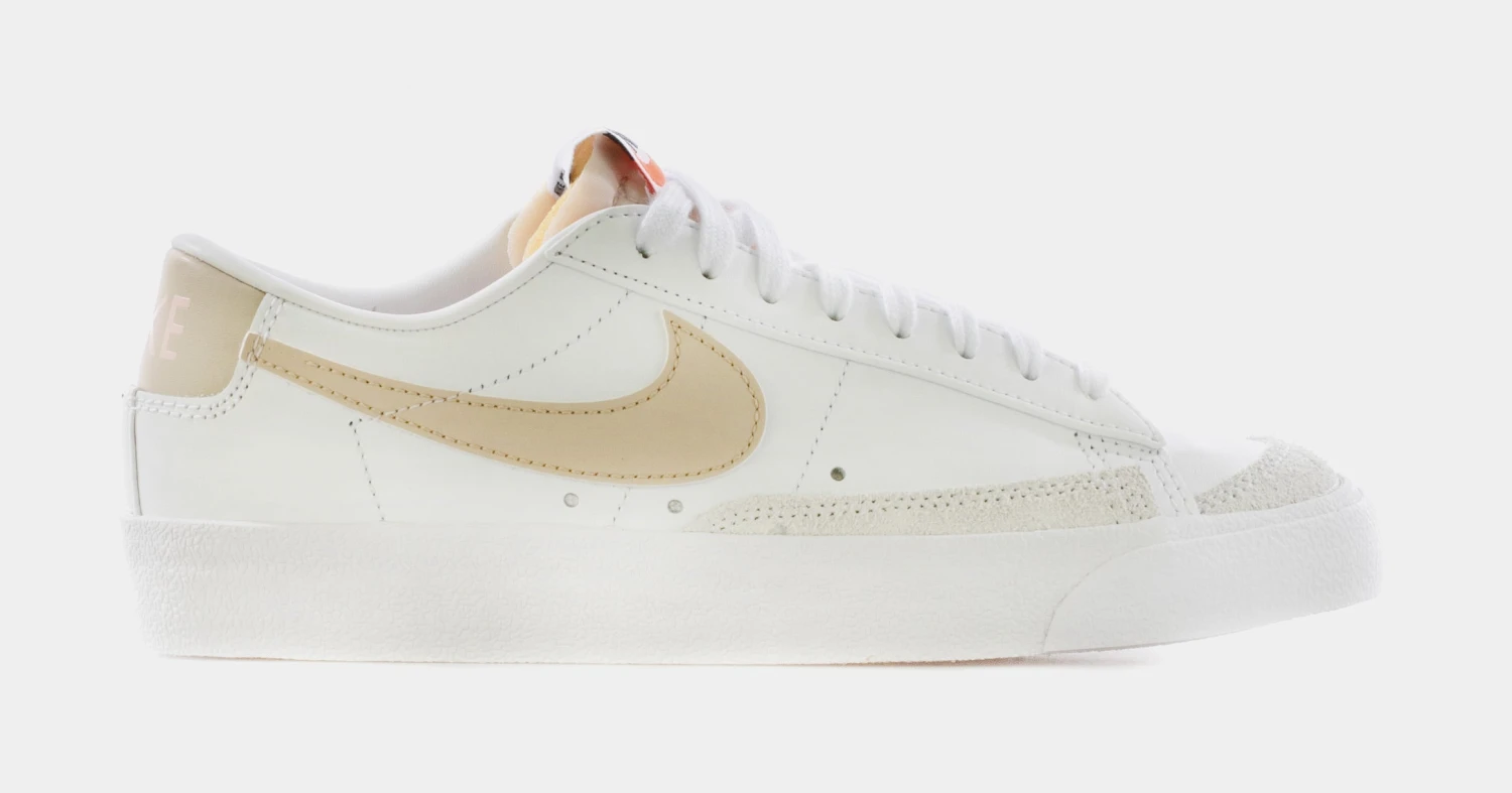 Dressed in a White, Pale Coral, Black, and Rattan color scheme. This offering of the Nike Blazer Low features a White leather upper with suede overlays up front and Pale Coral Swooshes and heels. Signature padded tongues atop a solid White rubber sole completes the design.