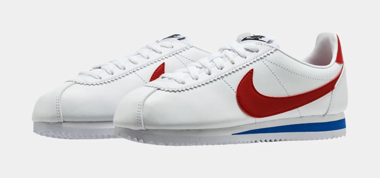 Nike Classic Cortez Leather Low Womens Lifestyle Shoes (White/Red/Blue)