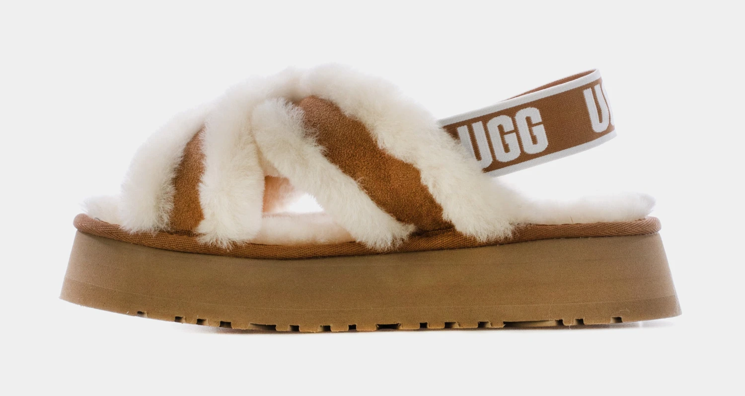 Evolving our bestselling Disco with a bold cross-strap upper, the new Disco Cross Slide stands out with ease. Featuring cozy fluff and retro-style platform soles, this head-turning silhouette is crafted with a logo-embellished elastic backstrap and our ultra-soft sheepskin. The elevated, 1.75″ sole is made from layered EVA foam, offering all-day cushioning, indoor-outdoor versatility, and a leg-lengthening look. Wear yours with boyfriend jeans, midi dresses, or track pants and a colorful tee.